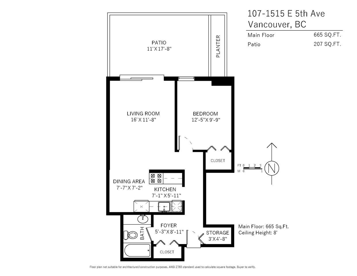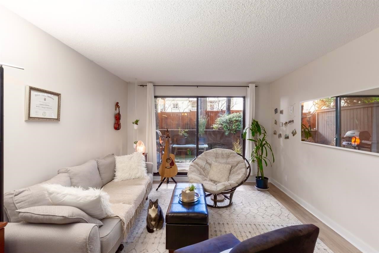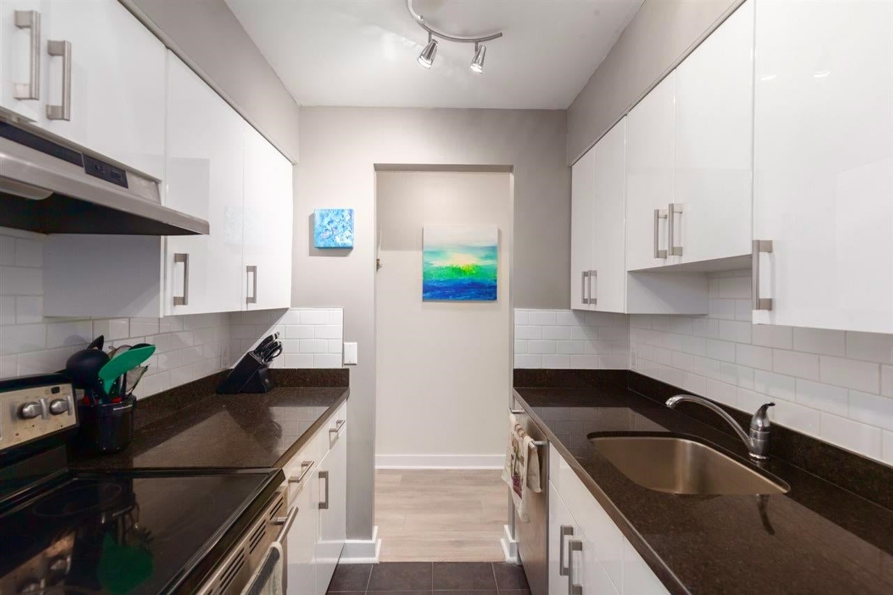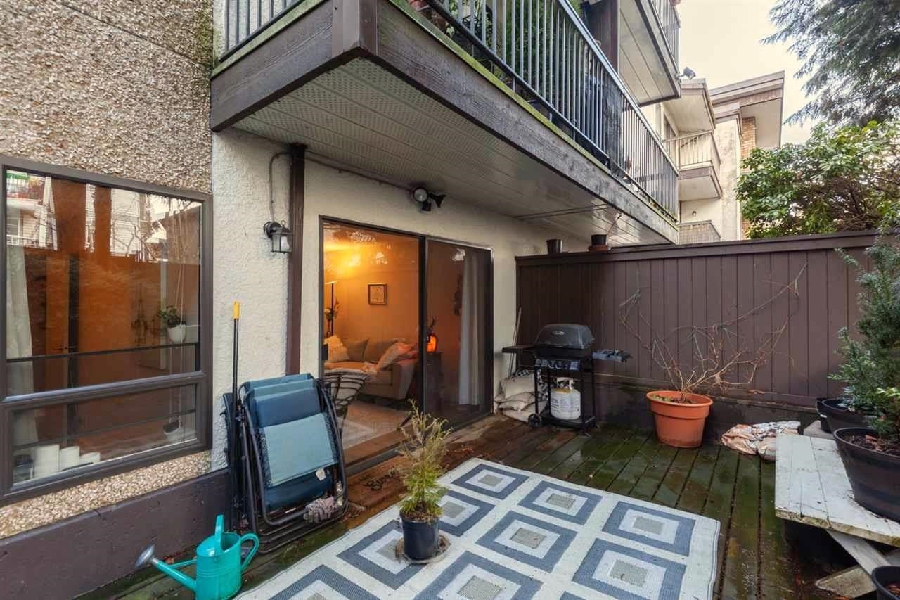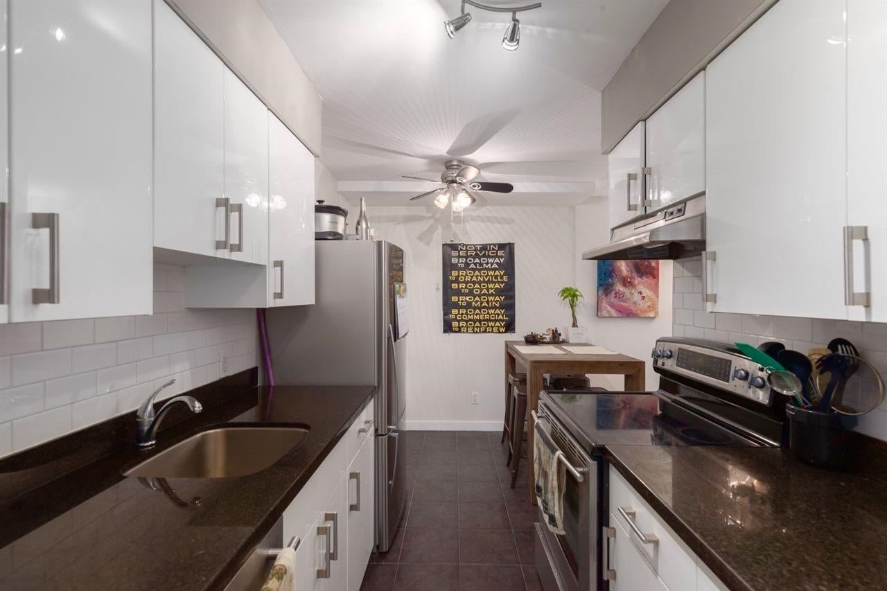 STEPS TO THE DRIVE! Great value for this spacious ground floor one bedroom condo with open den. With cosmetic upgrades over the years - laminate and tile flooring throughout, high gloss white cabinetry, rich quartz countertops, appliances in the kitchen and refreshed lighting. Features a gorgeous and private fenced patio, parking, and storage locker. The building is pet friendly (dogs and cats okay!) and has a very generous contingency fund. A great affordable starter home in one of the most desirable neighbourhoods in East Vancouver. Showings by appointment or at our Open House Saturday September 20th from 2-4pm.