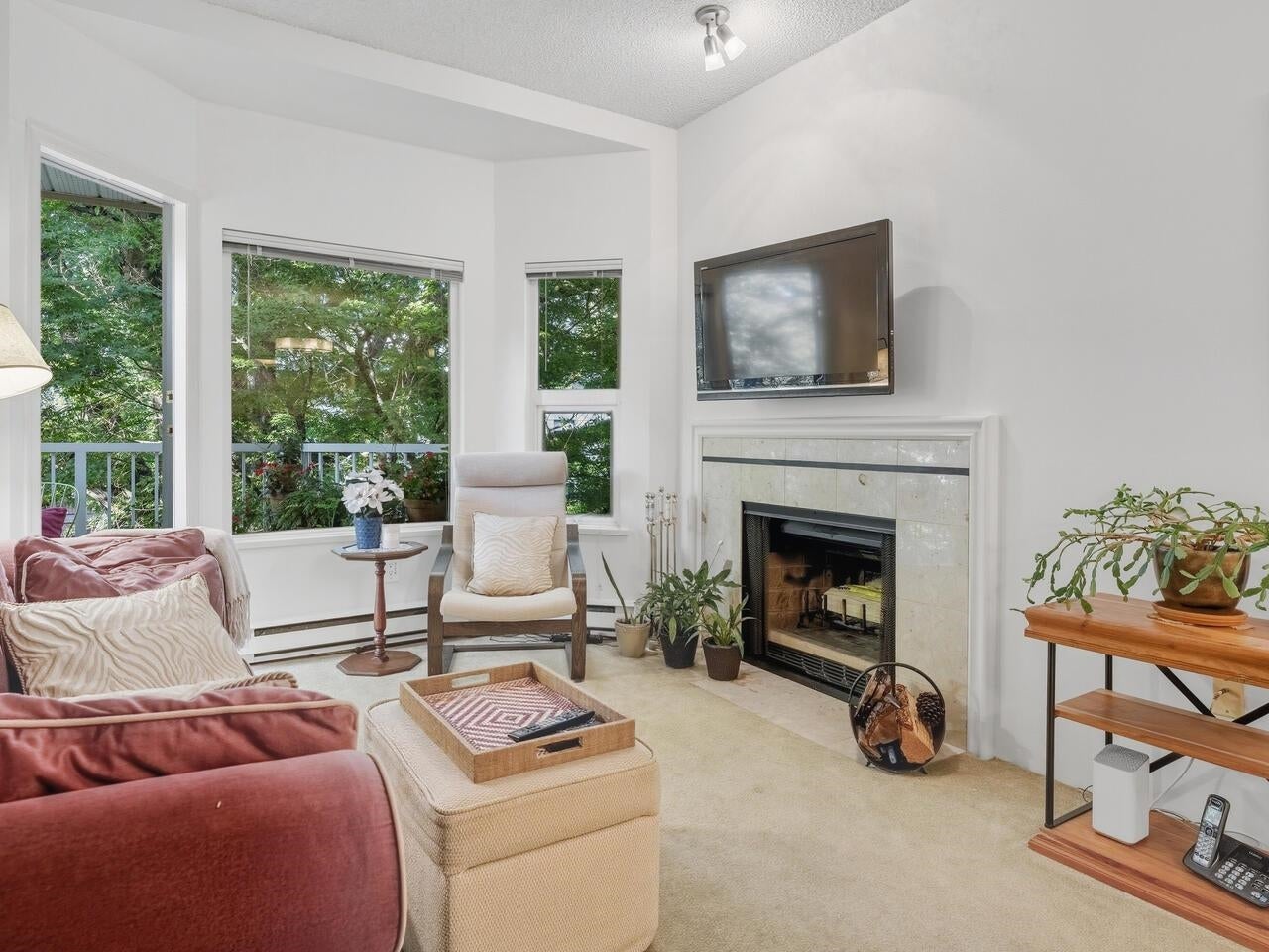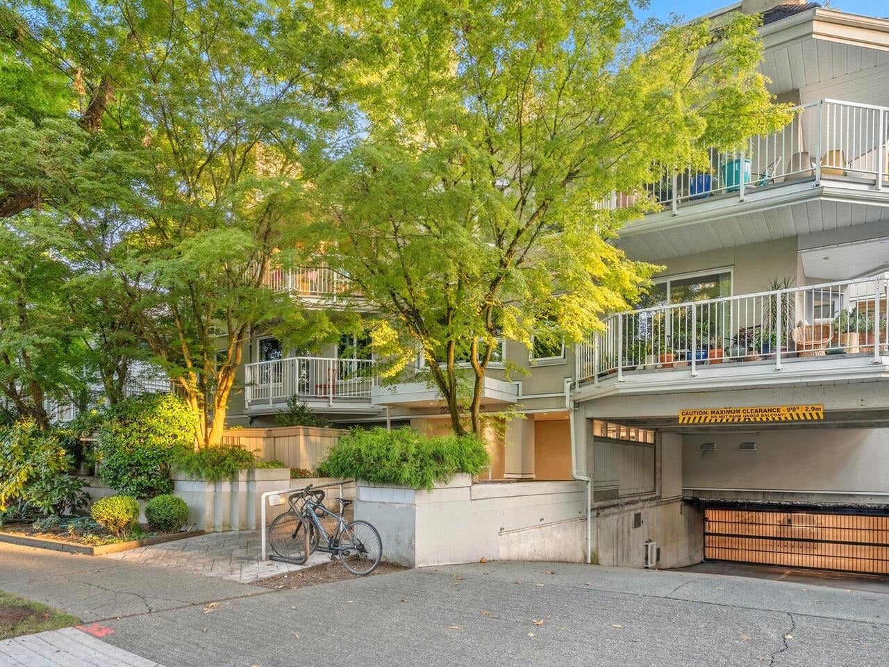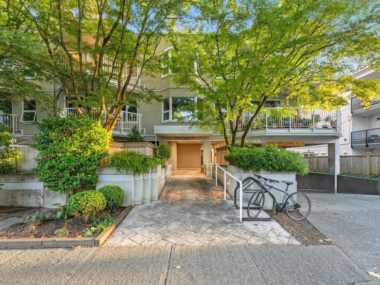 Finally, a well laid out and spacious Kitsilano condo! On the third floor, with no unit above, on quiet, tree-lined 7th Avenue. With a fully renovated kitchen and brand new bathroom, it shows beautifully. Contemporary countertops, high gloss cabinetry, bamboo flooring in the entry and kitchen, and freshly painted throughout. No wasted space, features a large open concept kitchen, dedicated dining area, bedroom easily fits a king size bed, cozy real wood burning fireplace, and patio in the trees - it's the perfect kits condo. A Short walk to the shops on 4th Ave, the beach and Broadway - great walk score, and includes parking and storage. Well maintained building has been rainscreened, and repiped. Elevator renewal is paid for. Offers Sept 23 at 12:30pm.
