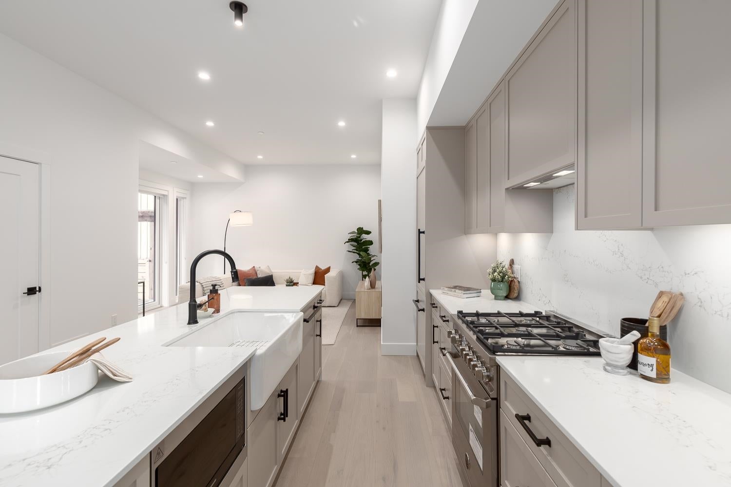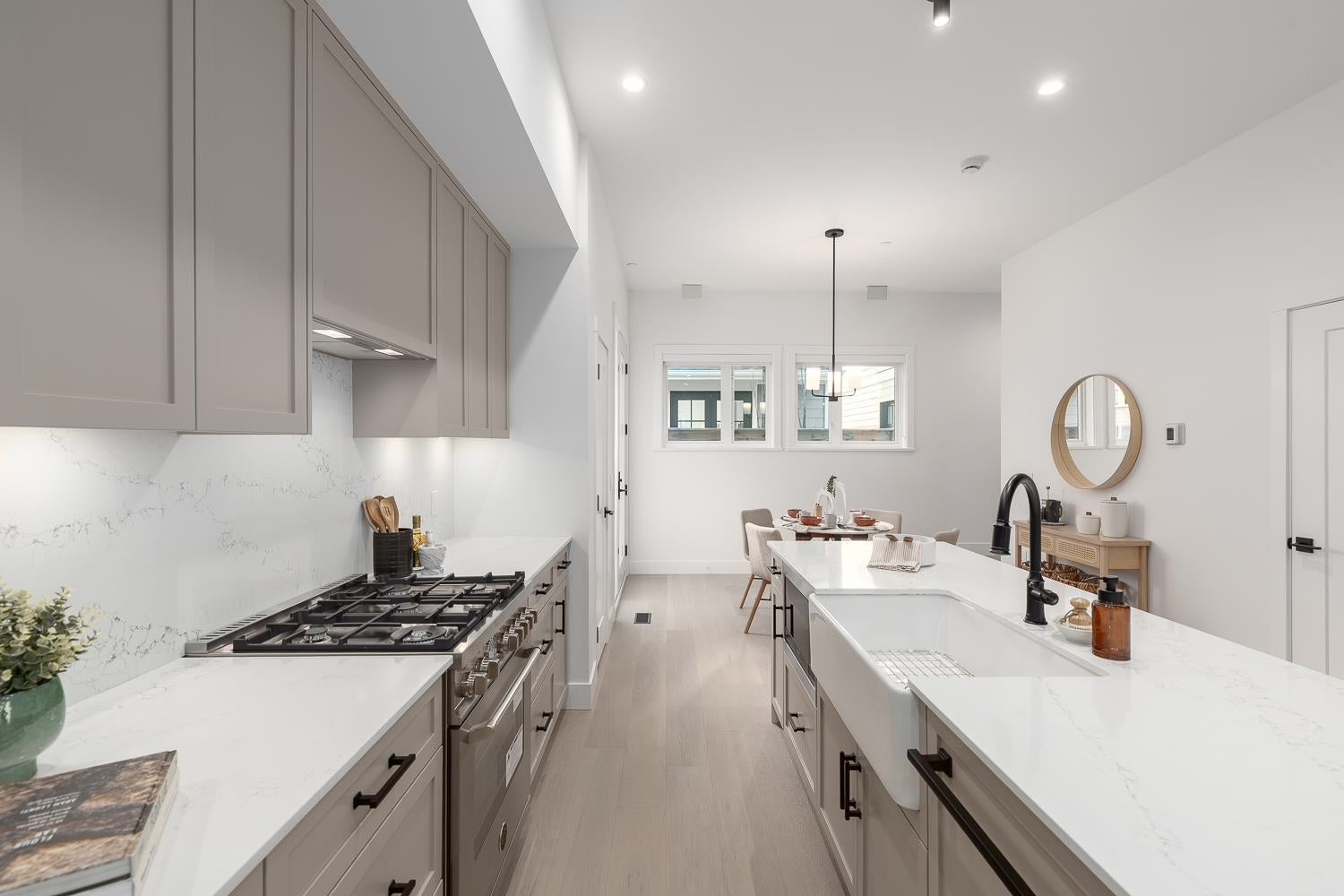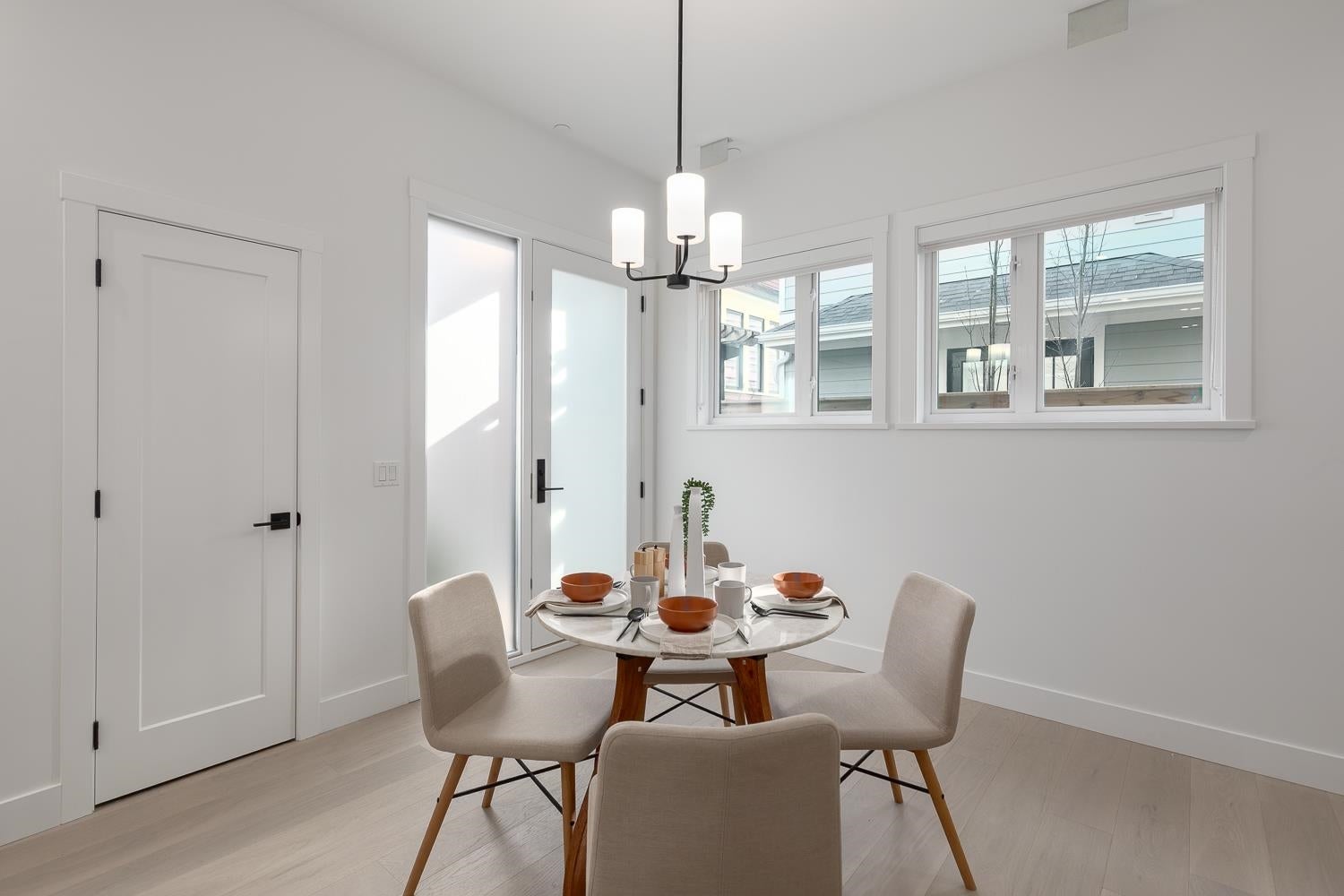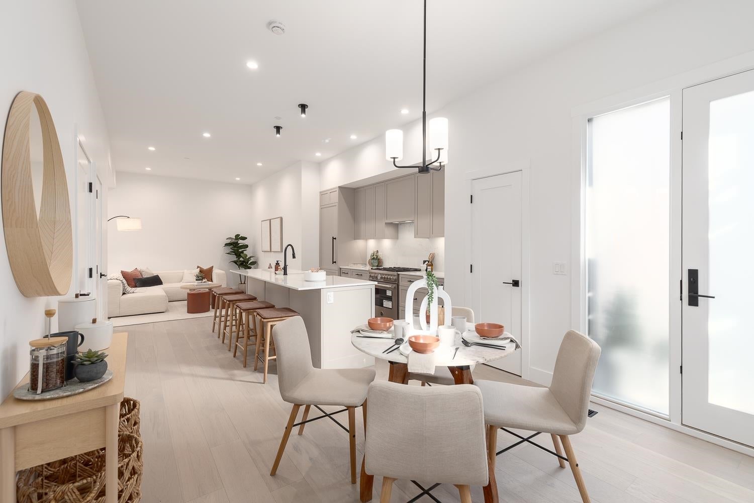 Welcome to 1061 Semlin Street, located in that gorgeous pocket between Victoria and Nanaimo in Grandview. This family friendly and vibrant neighbourhood is a real community. Steps from St. Francis, a short stroll to The Drive, many beautiful parks, restaurants, cafes, and amenities for families including Lord Nelson elementary. This unique and bright fully detached townhome features an ideal open concept layout on the main floor with spacious living room, dedicated dining area and a large kitchen with breakfast bar and powder room. Upstairs find three spacious bedrooms, including the primary bed with en suite plus additional full bath. Beautiful build quality and high end finishes throughout will delight the discerning buyer. AC, huge storage locker, fenced patio, and parking included.