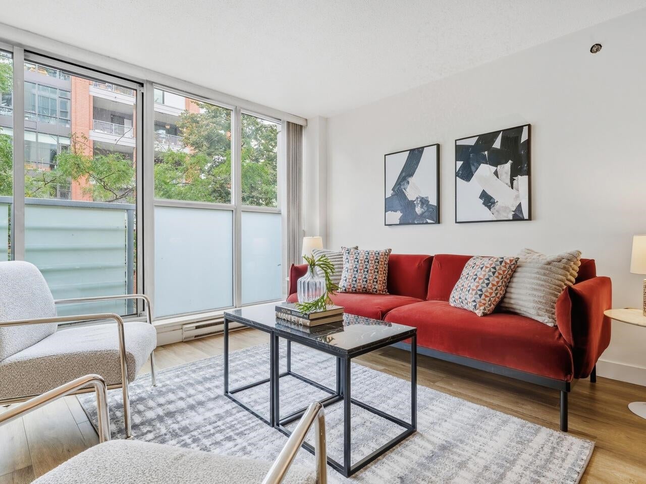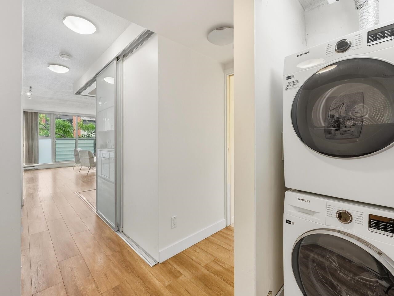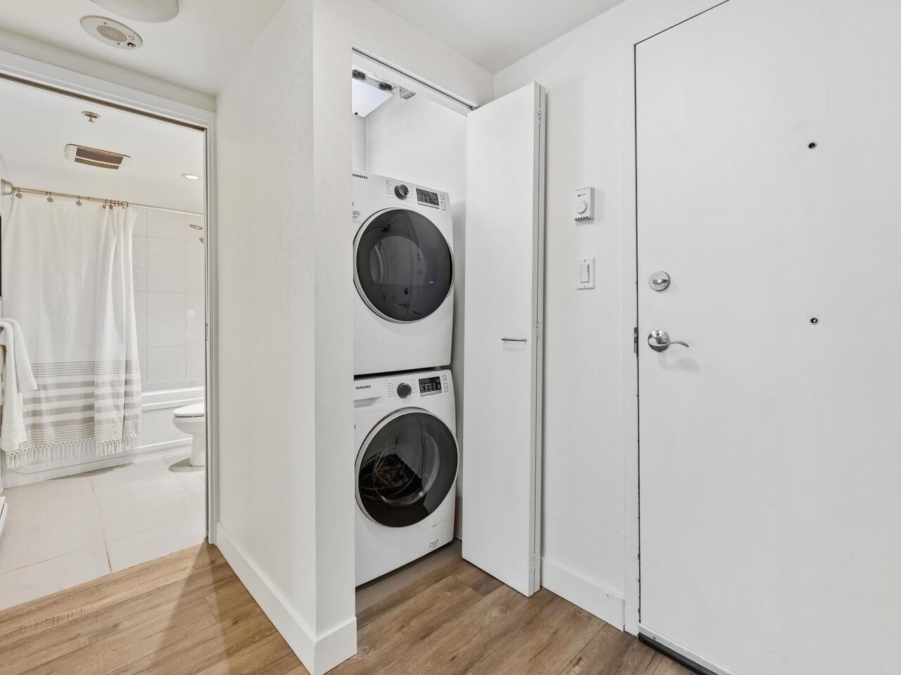 SMART by CONCORD PACIFIC - Spacious, open concept GASTOWN one bedroom condo with in suite laundry and parking at a great price! A short stroll to The Pan Pacific, Waterfront Skytrain, and many of the best restaurants and tourist spots in Vancouver. With high gloss white cabinetry, rich laminate flooring, floor to ceiling windows, juliet balcony, office nook, and contemporary finishings throughout, this home is a great choice for a first time buyer or investor. Worry free building with gym, storage, and secure underground parking. Pets and rentals allowed. Showings by appointment only.