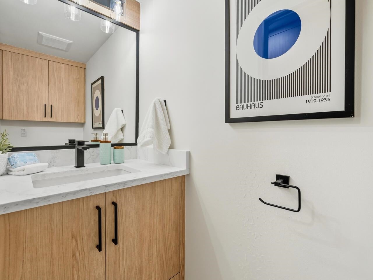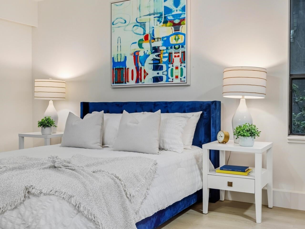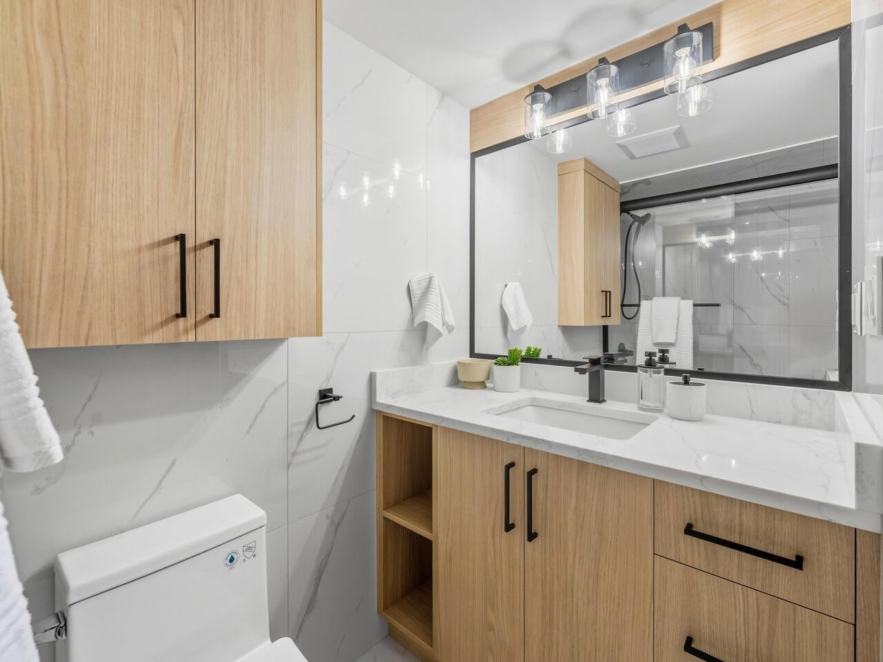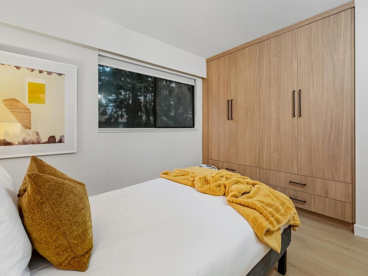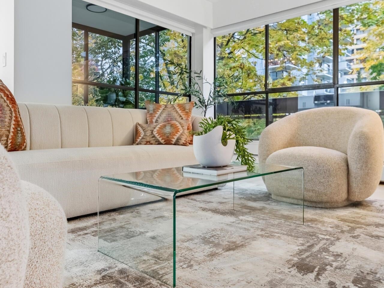 STUNNING RENOVATION! Every inch of this home shows like brand new. Two tone contemporary cabinetry and millwork, gorgeous electric fireplace, wide plank wood grain laminate, quartz countertops, brand new appliances, side by side laundry, upgraded lighting and window shades - the list goes on and on. With just two suites per floor, light pours in from windows on three sides. Measures at nearly 1000 square feet not including two enclosed patios, there is loads of room for living and entertaining. On a whisper quiet treelined street and a short walk to west end shops, restaurants and the beach, a peaceful, vibrant live awaits. Solid concrete building features EV charging, a generous contingency fund, parking and storage, dogs and cats allowed. Open House Sunday October 26 from 2:30pm-4pm.