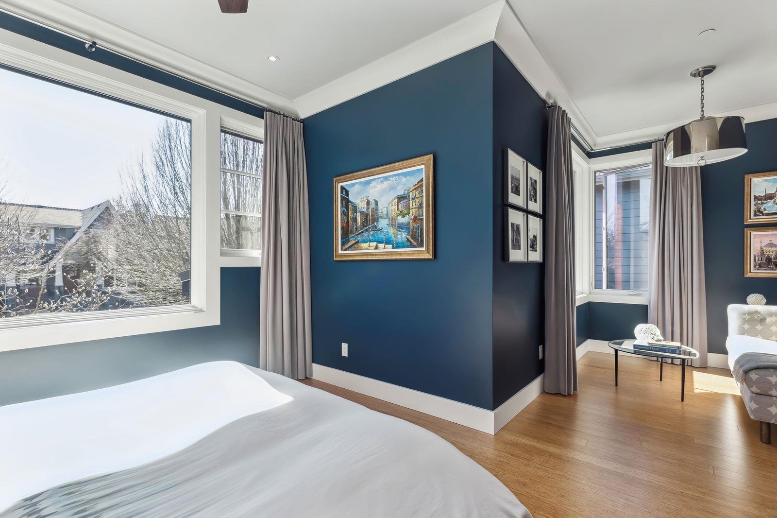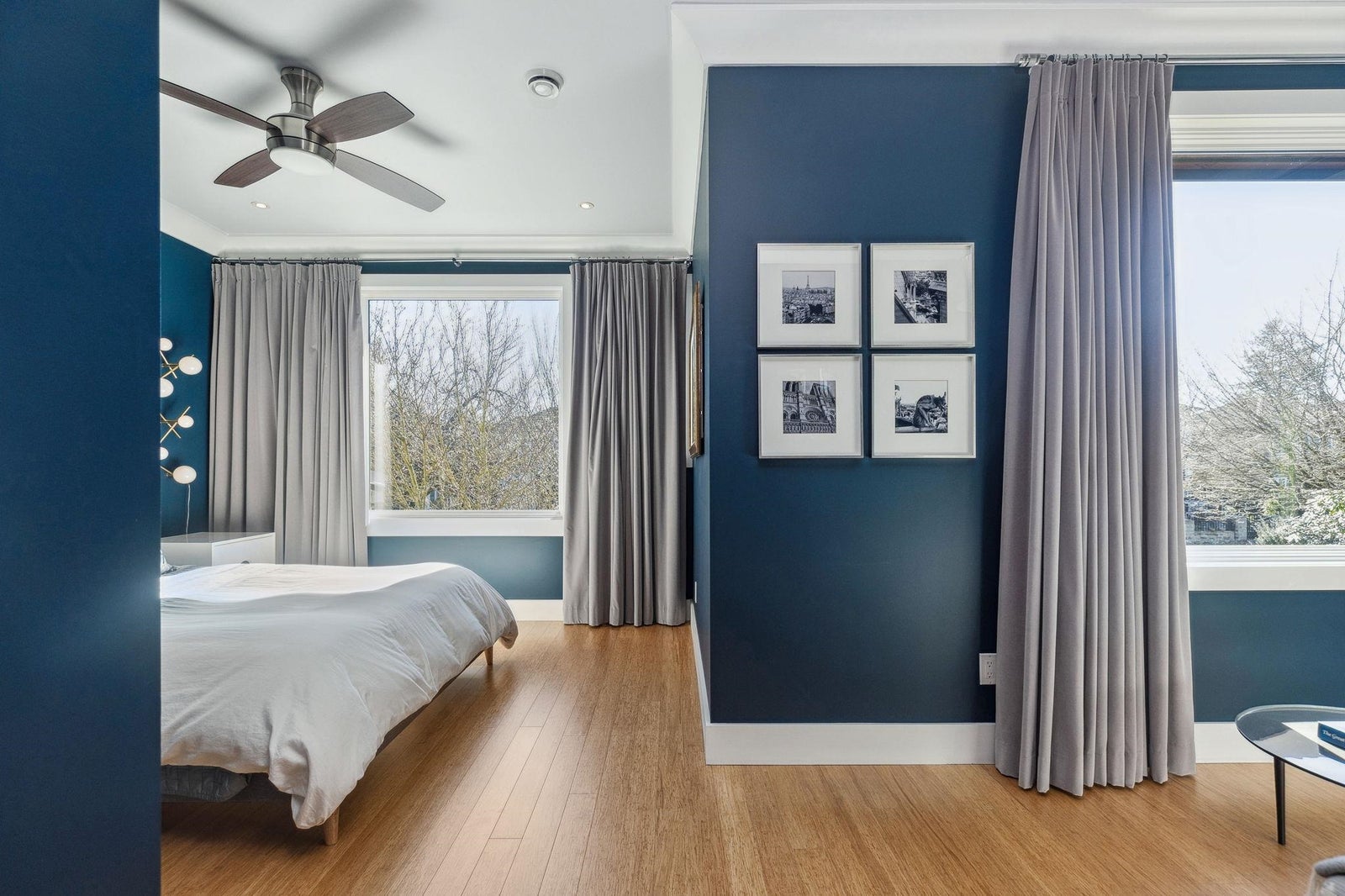 Crafted quietly above the rest and built for those who notice everything. Upstairs, the primary suite is a retreat within a retreat—complete with a lounge for watching the light change. Two additional bedrooms and a shared bath complete the top floor. On the main level, an open plan welcomes you home with chef’s kitchen, a built-in espresso machine and wine fridge, while a bright, spacious office and accordion doors to the garden add flow and function. Downstairs, 8’1” ceilings create space to breathe. Radiant in-floor heat and solid-core doors that close with a hush are daily reminders of the home’s quiet quality. EV-ready. Hammock hooks in just the right spot. Even the garage has a green roof. QE + Byng catchment. Open house Sunday, November 2nd 2:00 - 4:00 PM.
