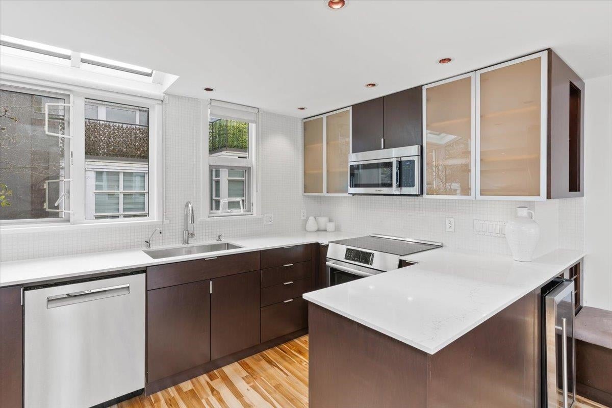 Welcome to 834 West 7th Avenue—a beautifully renovated 3 level townhouse in Fairview Slopes, one of Vancouver’s most central neighbourhoods. With over 1,500 sq. ft. of thoughtfully designed space, this 3-bed, 2.5-bath home blends modern luxury with everyday comfort. Enjoy new teak flooring, abundant skylights, an open-concept main level with a cozy fireplace & private deck for morning coffee or evening BBQs. The kitchen features brand new Bosch appliances, induction cooktop, wine fridge, & custom cabinetry. Upstairs, the primary suite offers a tranquil retreat with a second fireplace and updated ensuite. 2nd room with Murphy bed, & the 3rd lower-level bedroom or office adds versatility. Bright laundry room, & two secure parking stalls—all steps from Granville Island, Seawall, & Cambie St.