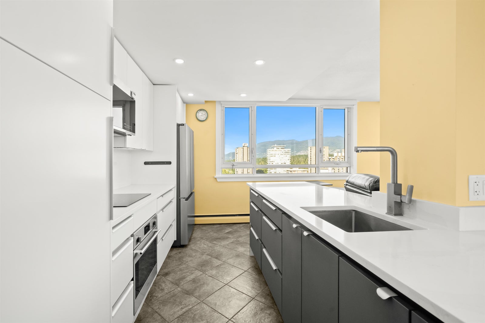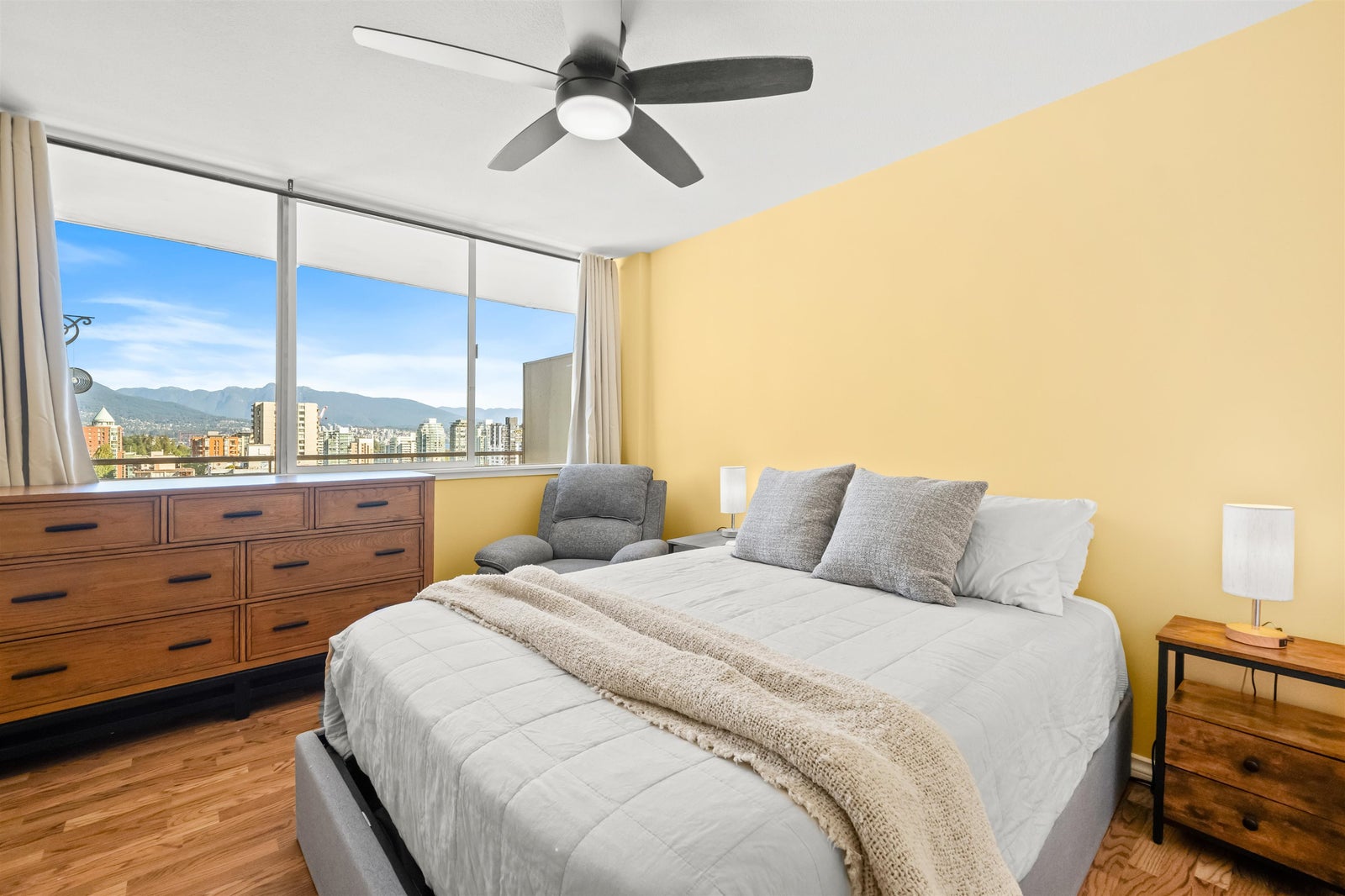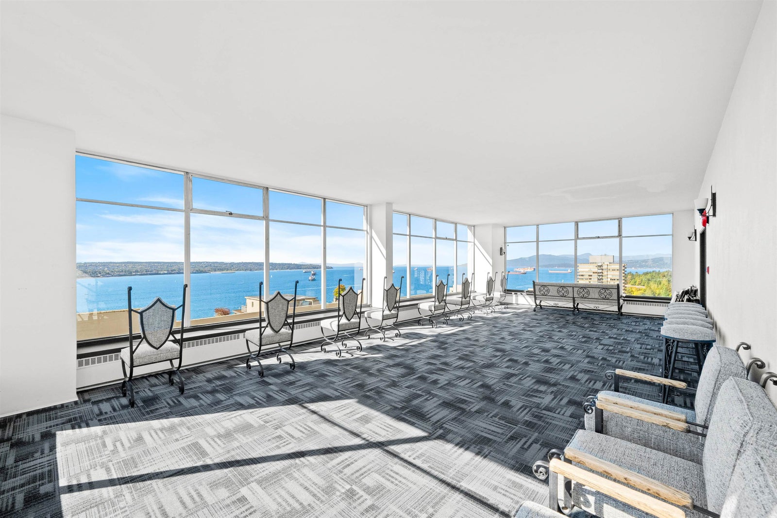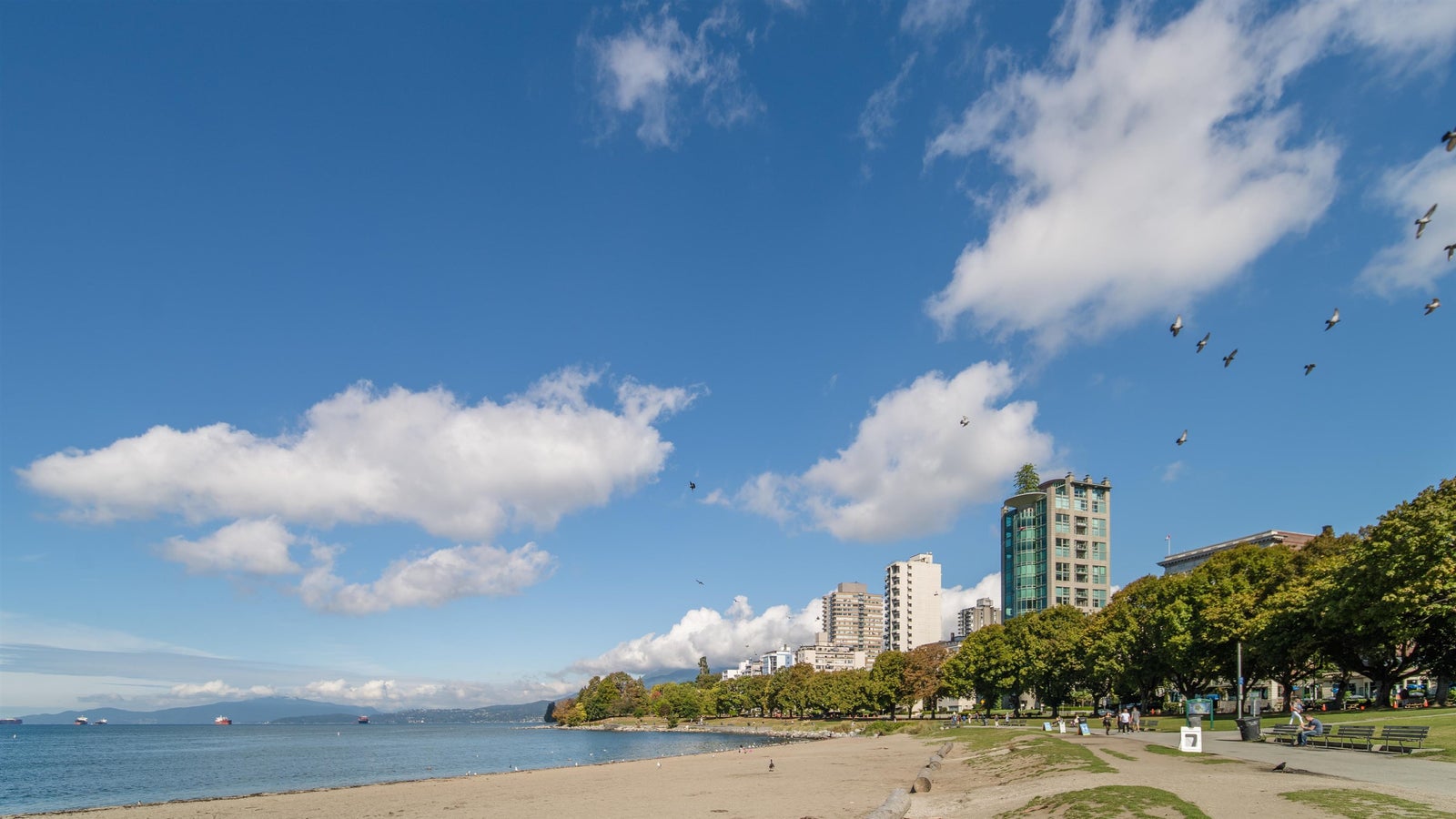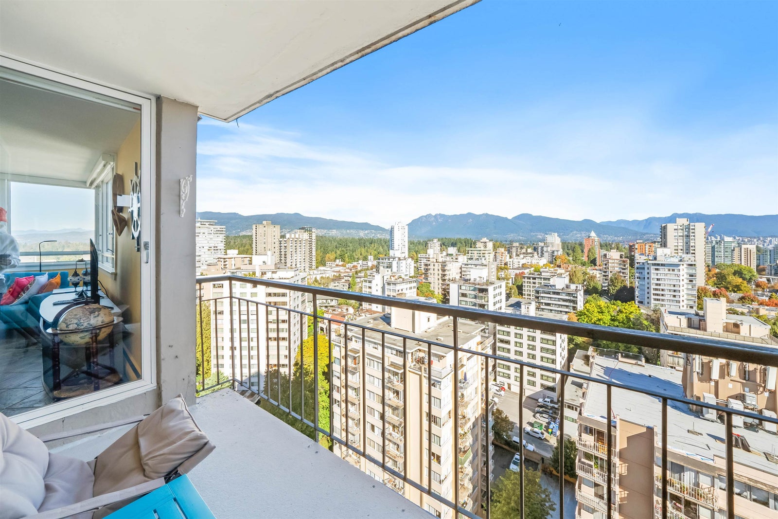 West of Denman! Bright 20th-floor corner suite with unobstructed ocean, mountain & city views from every window. NW exposure fills the home with natural light, ocean breezes & year-round sunsets. Extensive updates include a sleek high-gloss kitchen with quartz counters, new induction oven &S/S appliances. Be part of the unparalleled West End community, with beach, Stanley Park, pools, local shops & global eats on Denman Street at your doorstep. Well-managed concrete building with major upgrades complete, including roof, plumbing, pool & lobby, plus a rooftop lounge with 360° views. No Empty Homes Tax. Maint. fee includes taxes, heat, hot water & amenities. Lease prepaid to Dec 31, 2073. FURNITURE INCLUDED.